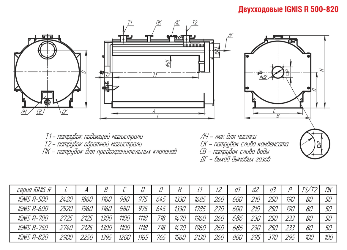 Технические характеристики водогрейного двухходового котла ARCUS IGNIS R-500